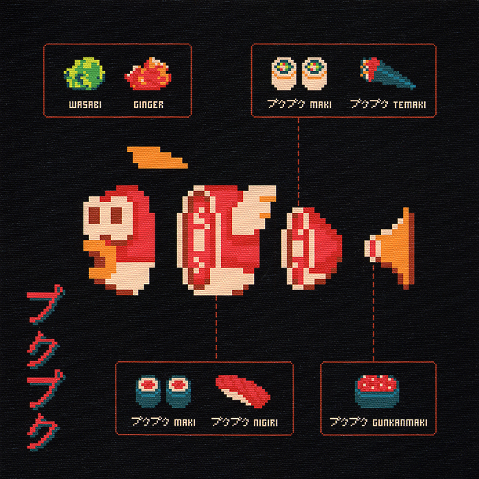 Graphic designer Darkchoocoolat aka Florent Rousseau has been creating some super fun nerdy art. 8 bit fruits and veggies can brighten up my day. Pop culture anything always sparks my interest.